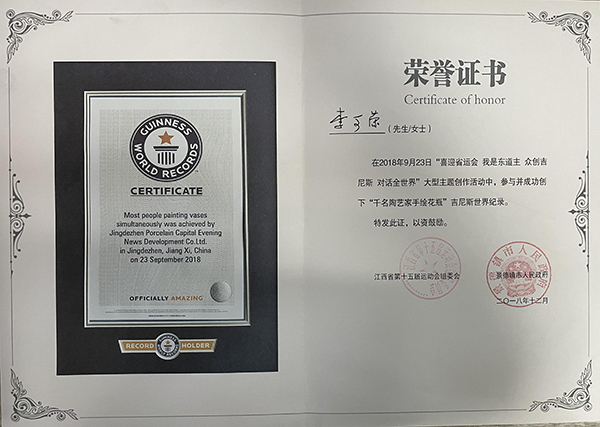 2018年參與“千名陶藝家手繪花瓶”吉尼斯世界紀錄。