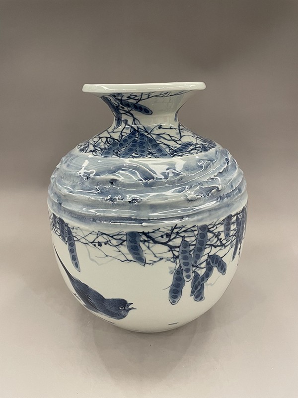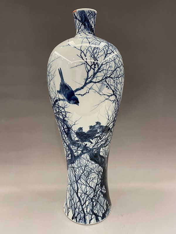 2021年,創(chuàng)作的柴窯青花瓶《松鷹圖》在第十七屆中(深圳)國際文化產業(yè)博覽交易會“中國工藝美術文化創(chuàng)意大賽”評選中榮獲“銀”獎。