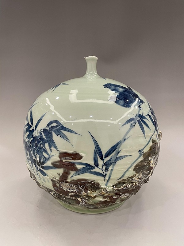 2021年青花“井岡精神代代傳”150件瓶被江西省工藝美術館收藏。