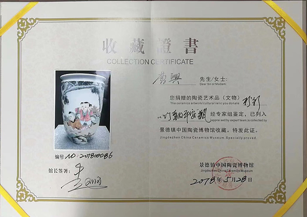 2018年作品《竹報(bào)平安》被景德鎮(zhèn)中國(guó)陶瓷博物館收藏